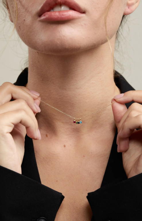Customize this 14K gold-filled necklace with multiple birthstones, creating a personalized piece perfect for everyday wear.