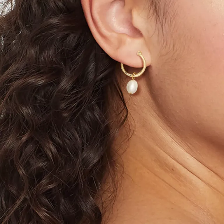 Minimalist and budget-friendly, these 14K gold-plated hoops feature a dangling pearl charm for a subtle touch of sophistication. They are secure and lightweight, perfect for everyday wear.